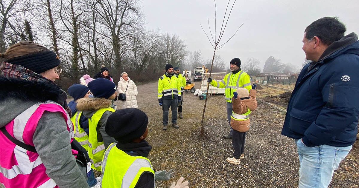Tout au bout de l’allée des jardins, en rive gauche du canal et à la hauteur des Jardins familiaux, l’équipe des espaces verts épaulée par des enfants de l’atelier Décore ta ville et du périscolaire se sont affairés à planter arbres et arbustes fruitiers, qui formeront une haie nourricière. Les amateurs de fruits n’auront bientôt qu’à tendre la main, tandis qu’oiseaux, abeilles et insectes pollinisateurs y trouveront un généreux garde-manger.