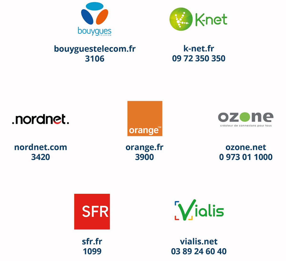 Si vous n’avez pas encore migré vers le réseau fibre déjà déployé sur la commune, vous êtes concernés, que vous soyez un particulier, un service public, une association, un professionnel ou une entreprise. Afin de continuer à bénéficier de vos services (téléphonie fixe, Internet, TV, autres usages spécifiques…) sur ce réseau plus moderne, il convient de vous rapprocher de votre opérateur télécom ou de tout autre opérateur télécom de votre choix. Sachez que vous pouvez choisir un abonnement ne concernant que la téléphonie fixe, il n’est en effet pas obligatoire de s’abonner à Internet et/ou à la télévision en ligne. Vous pouvez donc librement choisir parmi les offres de plusieurs opérateurs le service le plus adapté à vos besoins et le tarif d’abonnement le plus avantageux.